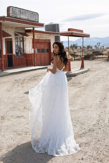 The Daina Gown is made from layered lace and tulle with a cut-out / semi sheer lace embroidered bodice. This gown is all things dreamy and makes the most breathtaking bridal gown for all the girls after that flowing & feminine look.