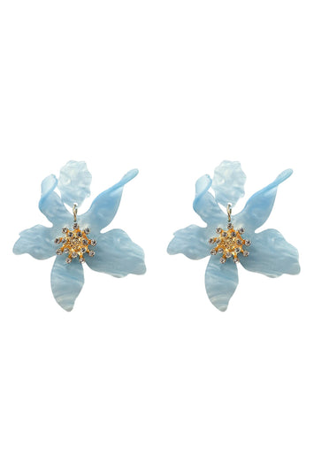 The Briella Blue Flower Earrings are the perfect statement piece for those girls who are wanting to stand out. Crafted with a blue acrylic flower with a gold centre with diamante embellishments.