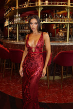 Elyse Sheer Maxi Sequins Burgundy Gown