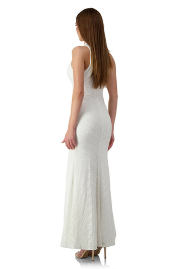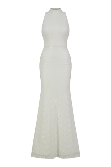 Lorina Elegant High Neckline Sequins Sparkling Gown White