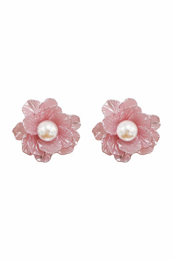 The Nevali Pink Flower Earrings will be the perfect accessory for your resort wear. Featuring an acrylic pink flower with a pearl centre. These earrings will elevate your look.