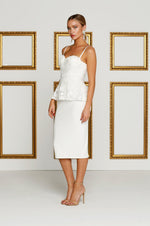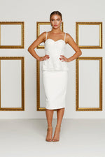 One word, CLASS ! This dress features a beautiful bustier design with peplum embroided tulle fabric