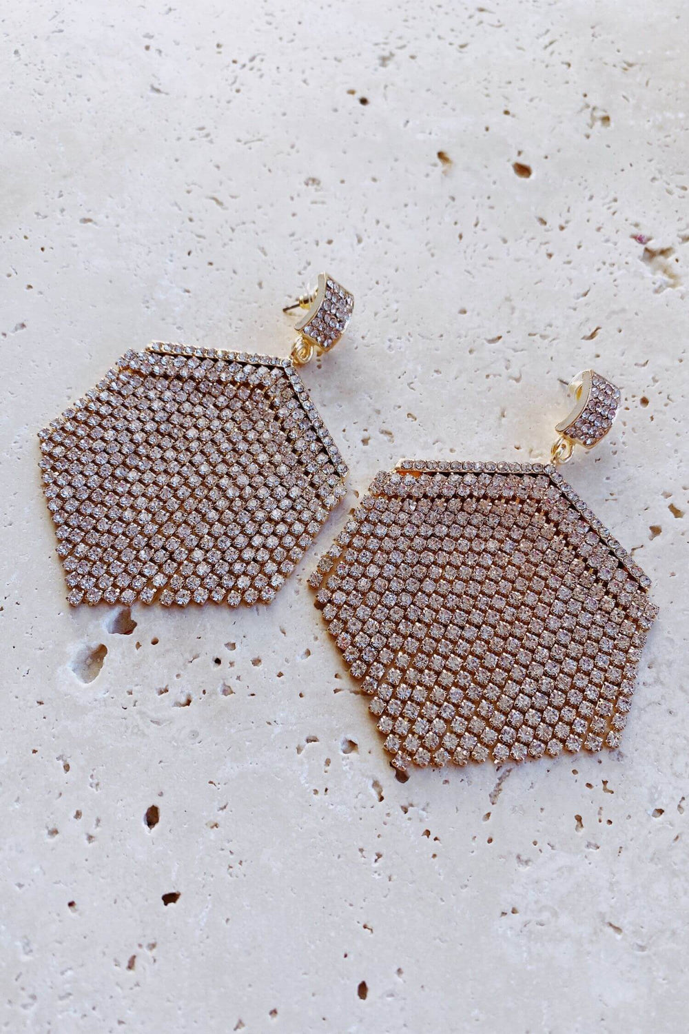 The Elmira Gold Crystal Drop Earrings will be the perfect finishing touch on your next gown. This intricate and elegant design features silver crystal detailing.