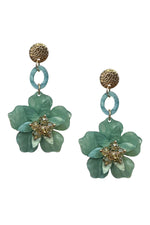 The Petra Teal Flower Drop Earrings will pair perfectly with your resort wear. Crafted from an acrylic material in an ivory tone and elevated with an amber-colored center. These gold studded flower earrings will tie your spring wardrobe together.
