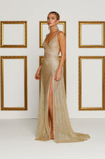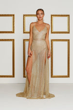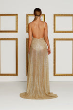 Be the centre of attention in this limited edition ALAMOUR sheer sequin evening gown. Exclusive Pattern Design.