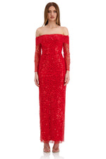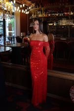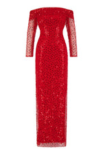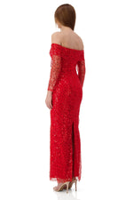 Damsel Beaded Off Shoulder Red Gown