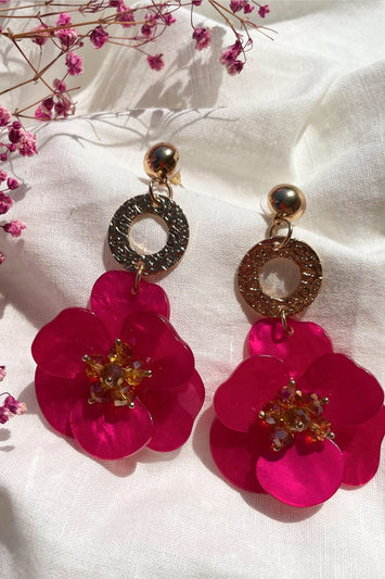 Petra Magenta Flower Drop Earrings