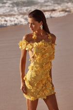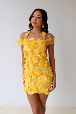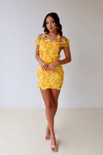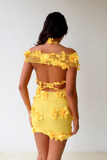 Meet the Ruby Dress - summer's newest must have! This mini dress is guaranteed to make a statement. With its vibrant yellow colour made from our signature floral 3D fabric, this ensemble is perfect to dazzle the crowds in. Featuring a halter neckline, non stretch fabric and side bodice exposure, accentuating your curves. This beautiful set is perfect for birthday parties, hens night, night out with the girls, beach clubs, rooftop bars.