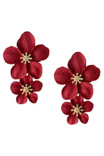 The Shyla Red Multi Flower Earrings are the perfect accessory to accentuate your look. This double flower design with gold centers is a must-have.