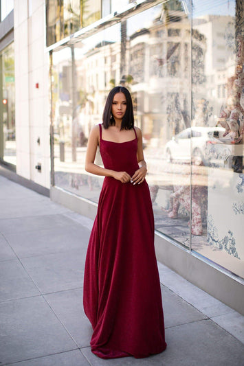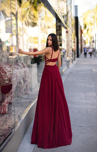 Makena Gown is made from the most stunning shimmering fabric to ensure that you stand out at your prom. Features of this gown are a scoop neckline with stunning back detail. The gown is fully lined and has a train at the back.