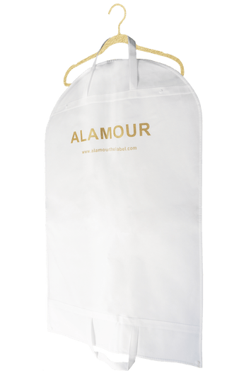 Love this cover bag. It adds security and care fir the special evening dress you have purchased. The fold over handle is idea when travelling so you don't have to drag a long back. I always buy an Alamour dress bag as the quality is as good as the gowns.