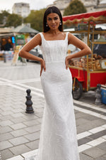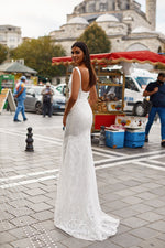 Simple and elegant, the Alev Gown is the dress of choice for our minimalistic brides. Created with a straight neckline and boning in the bodice for added structure and elevated with a straight neckline and low back for a sophisticated look. The Alev Gown will be unforgettable.