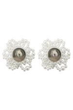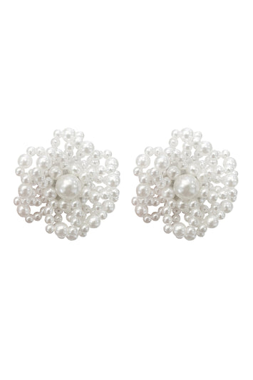 The Audrina Pearl Flower Statement Earrings will be the perfect addition to your look. This intricate and elegant design features pearl detailing which creates the ultimate statement earring.