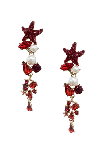 The Isabel Red Drop Earrings will be a stylish addition to your look. Styled with a starfish stud that features cascading gems and pearls. You can pair this with any look to add a youthful touch.