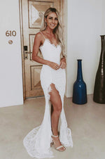 Prepare to captivate onlookers in the Layali Gown, a true embodiment of timeless elegance. Intricate scalloped lace, a graceful v-neckline, and a sultry low back adorn this gown. Delicate straps, a flirtatious side slit, and a floor-length skirt complete the picture. Designed with your comfort in mind, it features padded cups and a discreet center back zip. The Layali Gown is the ultimate choice for those who demand nothing but the finest in high-end fashion.