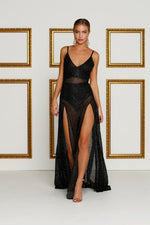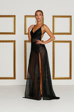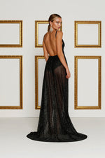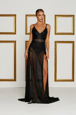 Be the centre of attention in this classic ALAMOUR sheer sequin evening gown. Featuring two slits at the front with a princess mermaid tail that adds a luxe feeling to this gown. The bust is lined and comes with black underpants. Exposed back zipper. Please note colour may vary due to lighting on images. Please refer back to our Instagram page @alamourthelabel or Customer Page @alamoursociety for a true color of this gown.
