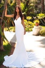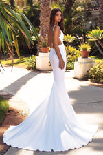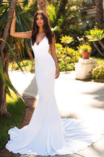 Become a beautiful goddess in the Tamara gown. This gorgeous satin gown features a plunge v-neckline, adjustable straps, open back, mermaid silhouette and a long sweep train. The Tamara gown will exceed your expectations.