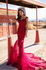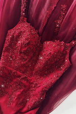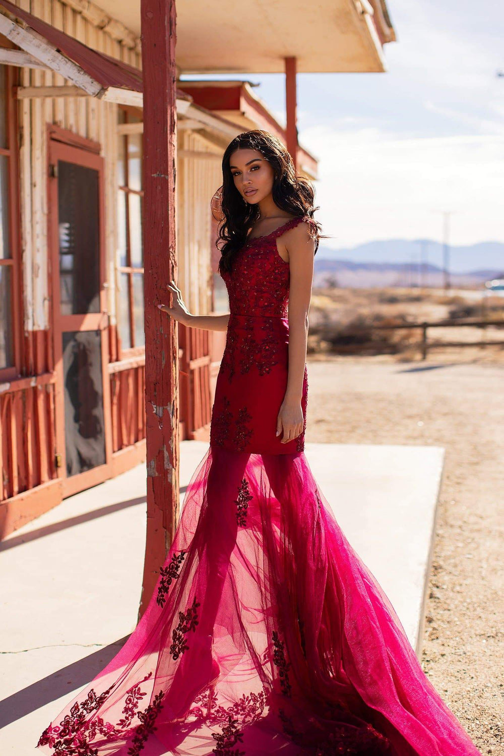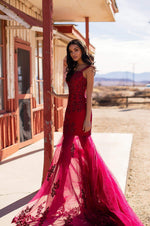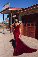 Cassie Lace Beaded Burgundy Mermaid Gown