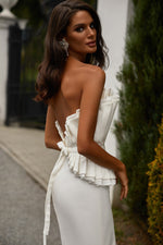 Cut from sculpting twill fabric, this couture midi dress encapsulates glamour. The Arianna dress features an attached pleated bodice with a bow back and fitted pencil skirt. Made to make a statement, the Arianne Dress will catch all the attention.