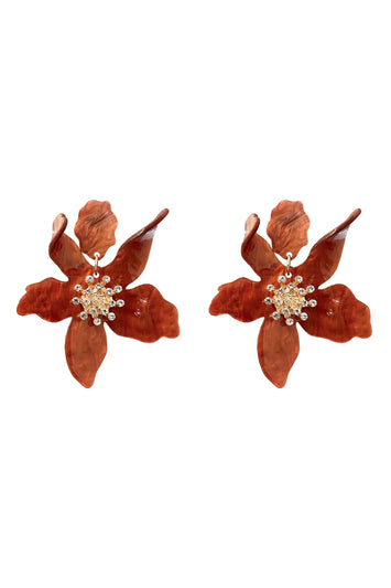 The Briella Brown Flower Earrings are the perfect statement piece for those girls who are wanting to stand out. Crafted with a chestnut brown toned acrylic flower with a gold center with diamante embellishments.