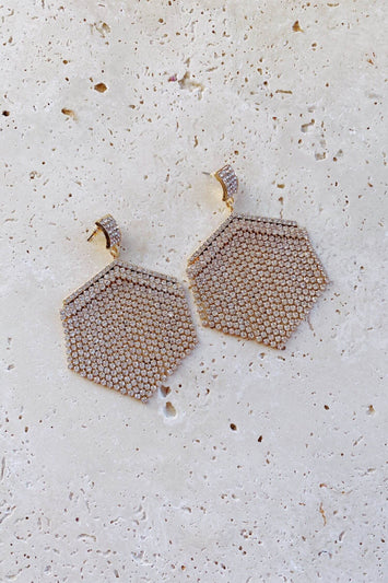 The Elmira Gold Crystal Drop Earrings will be the perfect finishing touch on your next gown. This intricate and elegant design features silver crystal detailing.
