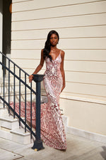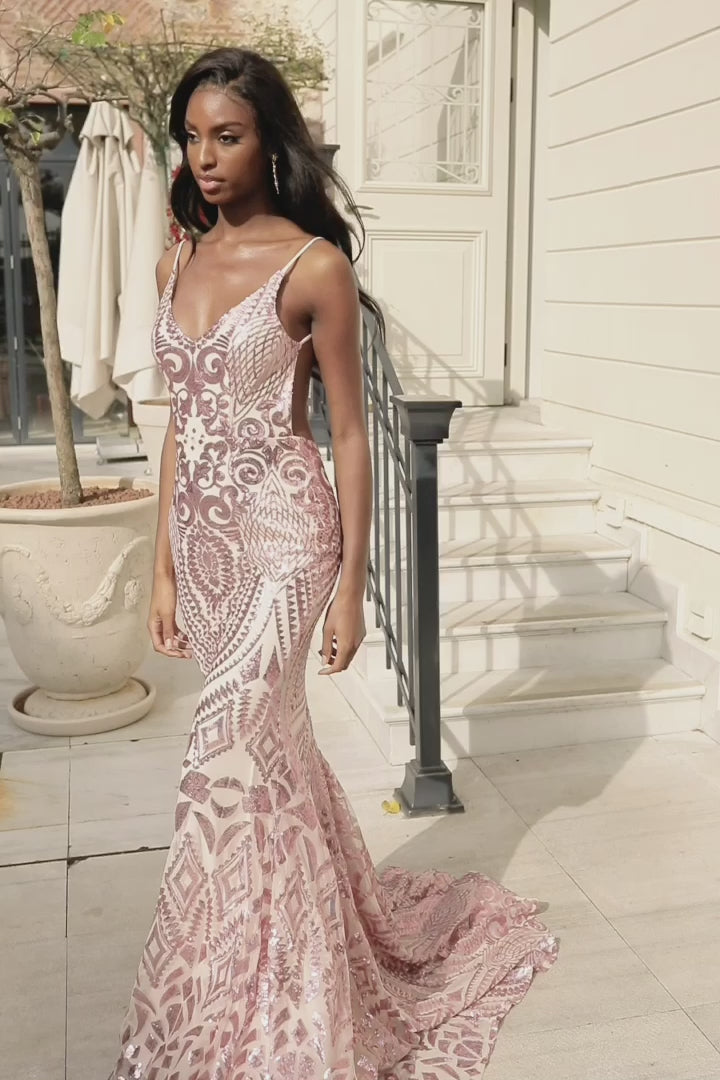 Turn heads in our Mariana Gown, a glamorous statement evening style in a geometric patterned fabric. Featuring a classic v-neckline and a low back with a mermaid train. This fabric is super stretchy and was made to flatter your figure.