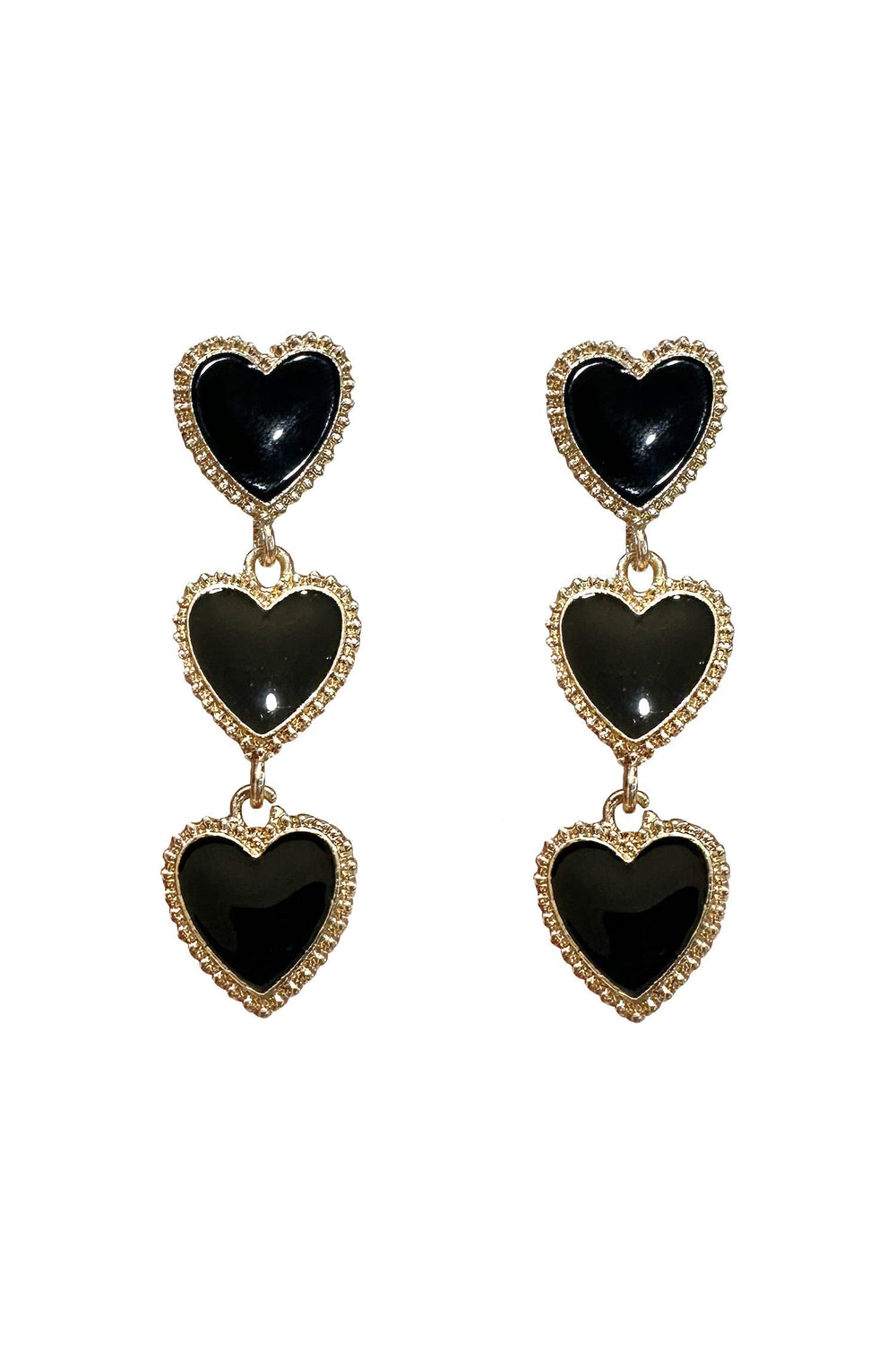 Add a pop of colour to your gown with these delicate gold earrings with cascading black hearts drops. The Shirley Black Heart Earrings will pair perfectly with any of your Alamour looks.